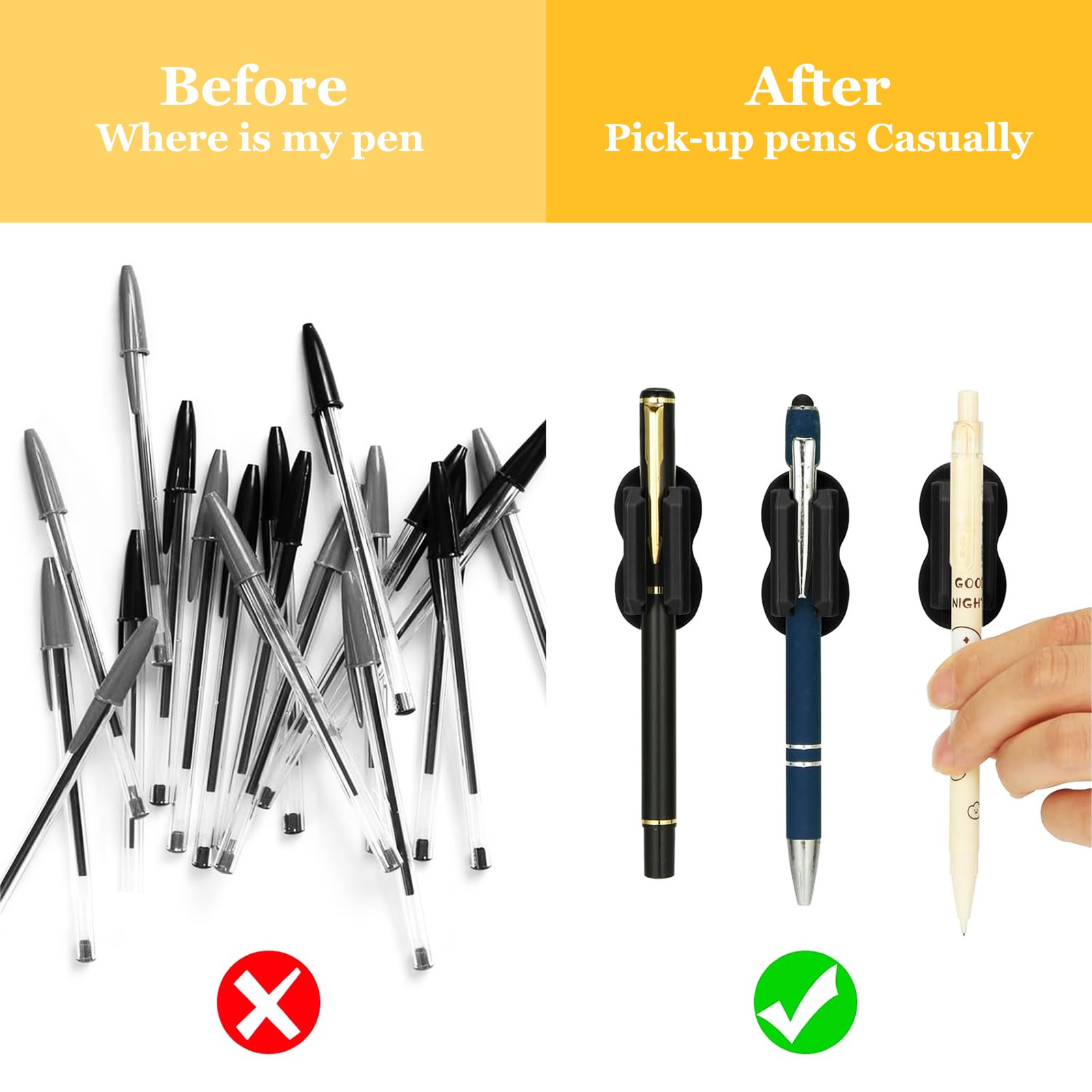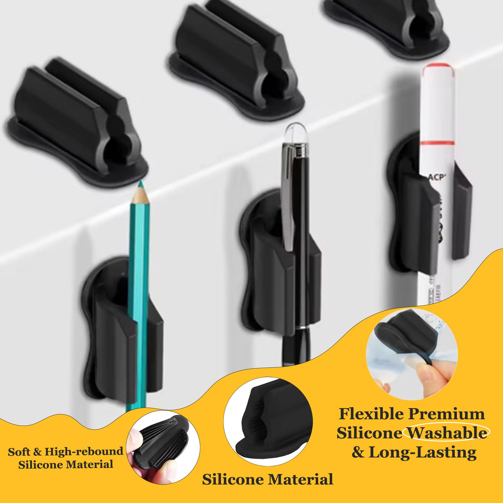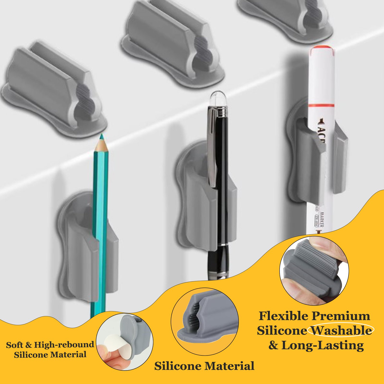 Golivedeal Adhesive Silicone Pen Holder 20 Pack is a versatile desk and wall organizer designed to securely hold pens, pencils, markers, and other writing tools. Made from premium BPA-free silicone with strong adhesive backing, these reusable holders are easy to install on smooth surfaces without drilling. Ideal for offices, classrooms, homes, and creative workspaces, this 20-pack with upgraded sticker pads keeps your desk clutter-free while providing durable, flexible, and stylish organization.