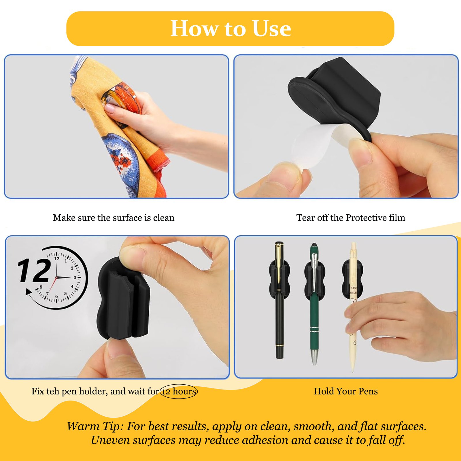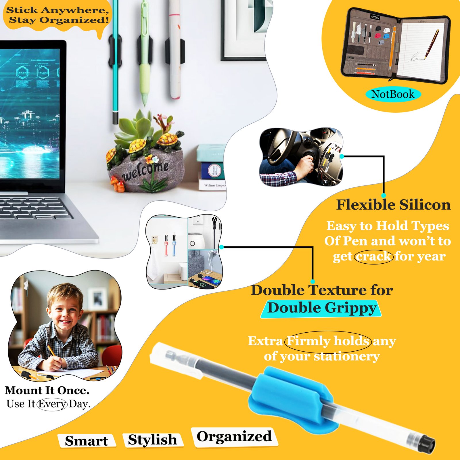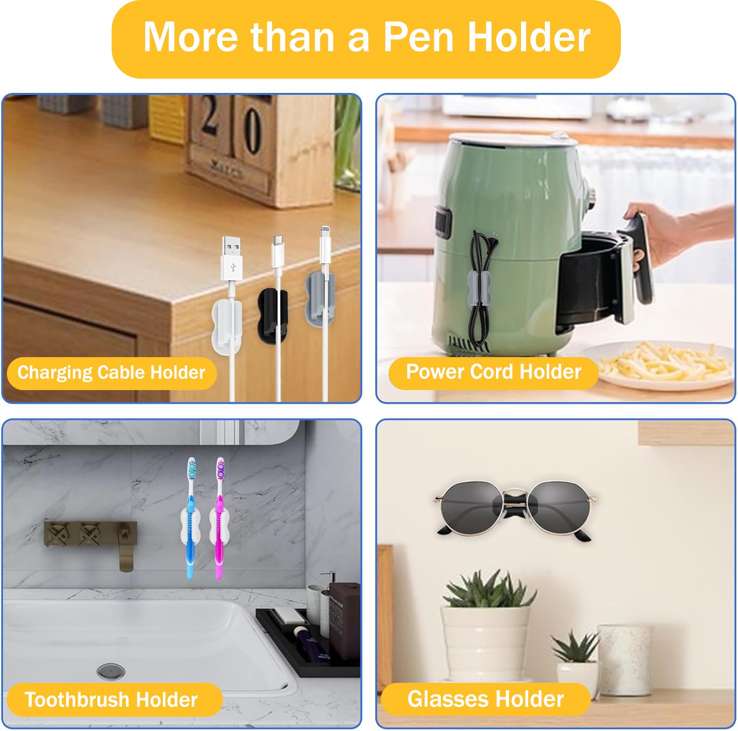 Golivedeal Adhesive Silicone Pen Holder 20 Pack is a versatile desk and wall organizer designed to securely hold pens, pencils, markers, and other writing tools. Made from premium BPA-free silicone with strong adhesive backing, these reusable holders are easy to install on smooth surfaces without drilling. Ideal for offices, classrooms, homes, and creative workspaces, this 20-pack with upgraded sticker pads keeps your desk clutter-free while providing durable, flexible, and stylish organization.